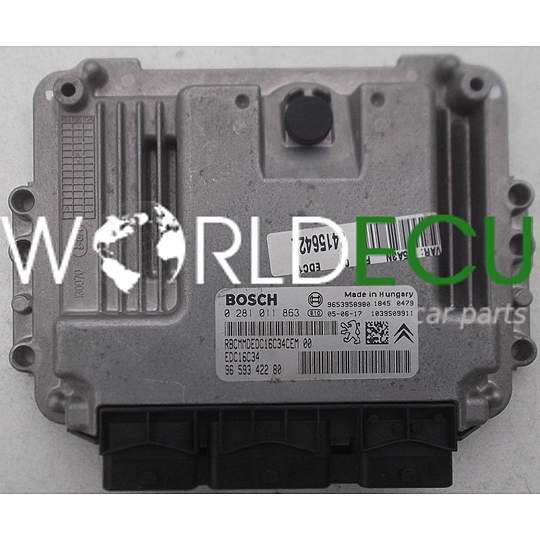 CALCULATEUR MOTEUR PEUGEOT 307 1.6 HDI BOSCH 0 281 011 863, 0281011863, 96 593 422 80, 9659342280, 9653958980, EDC16C34